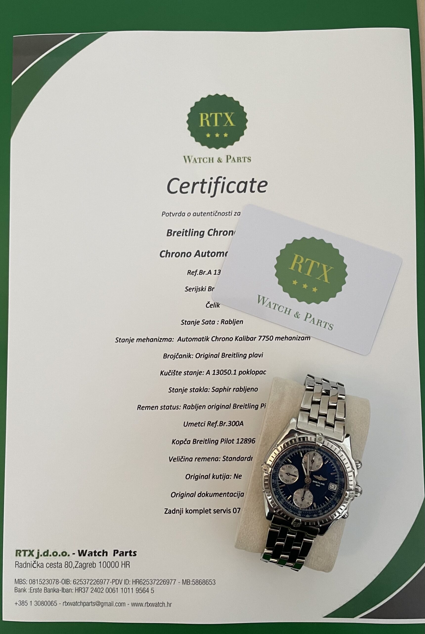 Brojčanik: Originalni Breitling plavi Stanje kućišta: A 13050.1 poklopac Stanje stakla: Saphir korišten